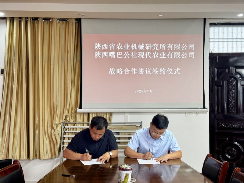 2025年7月8日,陜西省農(nóng)業(yè)機械研究所有限公司與陜西嘴巴公社現(xiàn)代農(nóng)業(yè)有限公司舉行了戰(zhàn)略合作簽約儀式。公司執(zhí)行董事、總經(jīng)理劉曉峰與陜西嘴巴公社現(xiàn)代農(nóng)業(yè)有限公司(以下簡稱“嘴巴公社”)執(zhí)行董事張恒忠共同簽署協(xié)議,標志著雙方將緊密攜手,以科技賦能現(xiàn)代農(nóng)業(yè)發(fā)展,聚焦現(xiàn)代農(nóng)業(yè)綠色生產(chǎn)與智能裝備,開啟深度合作新篇章。